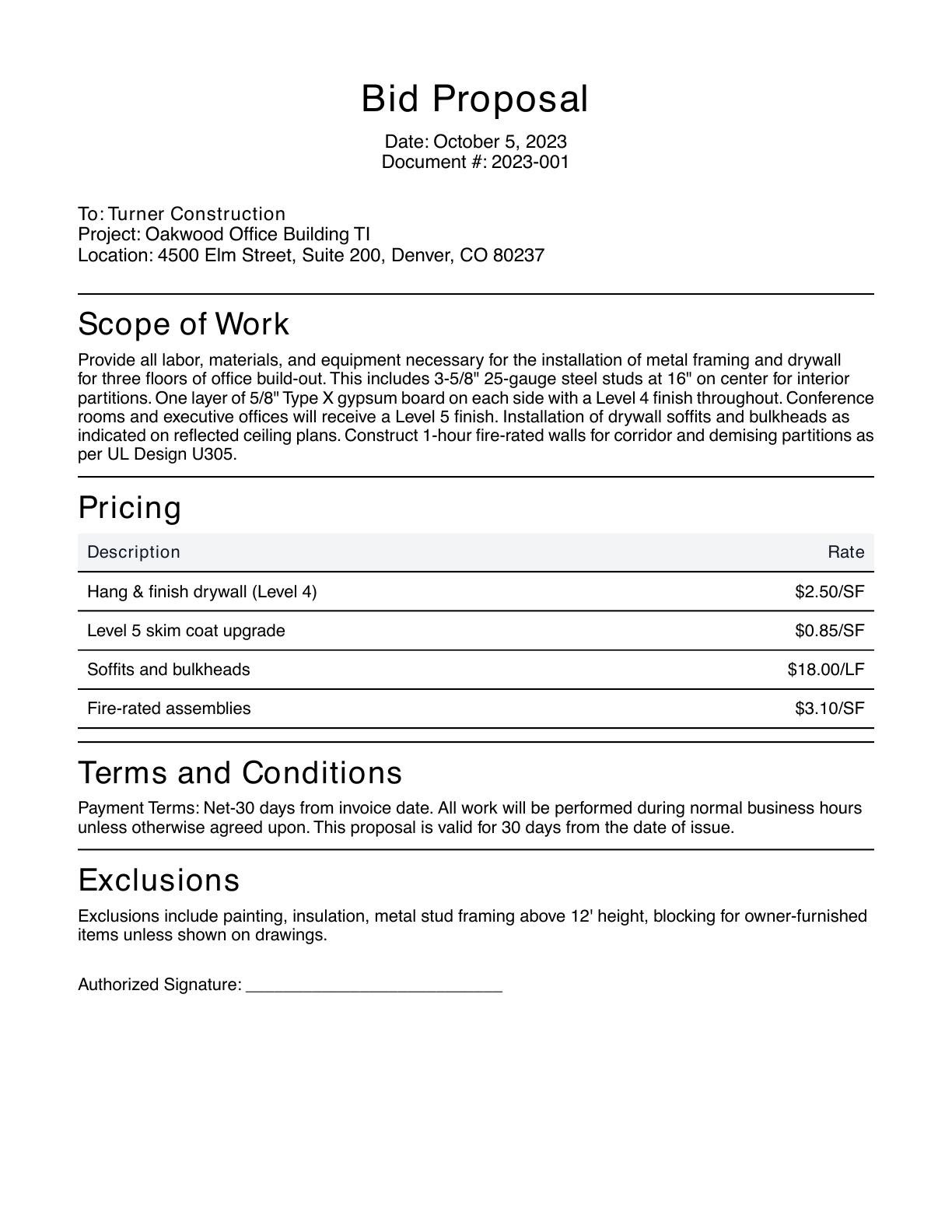 Free Drywall Bid Proposal Writer