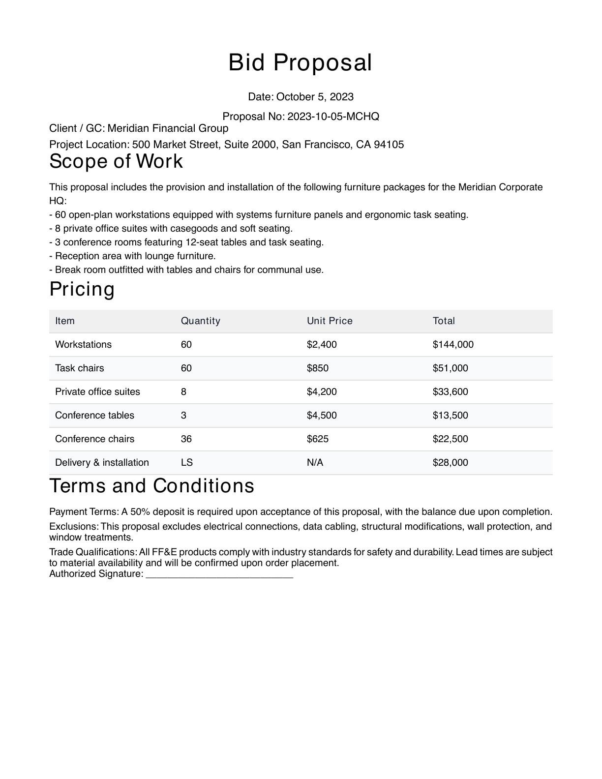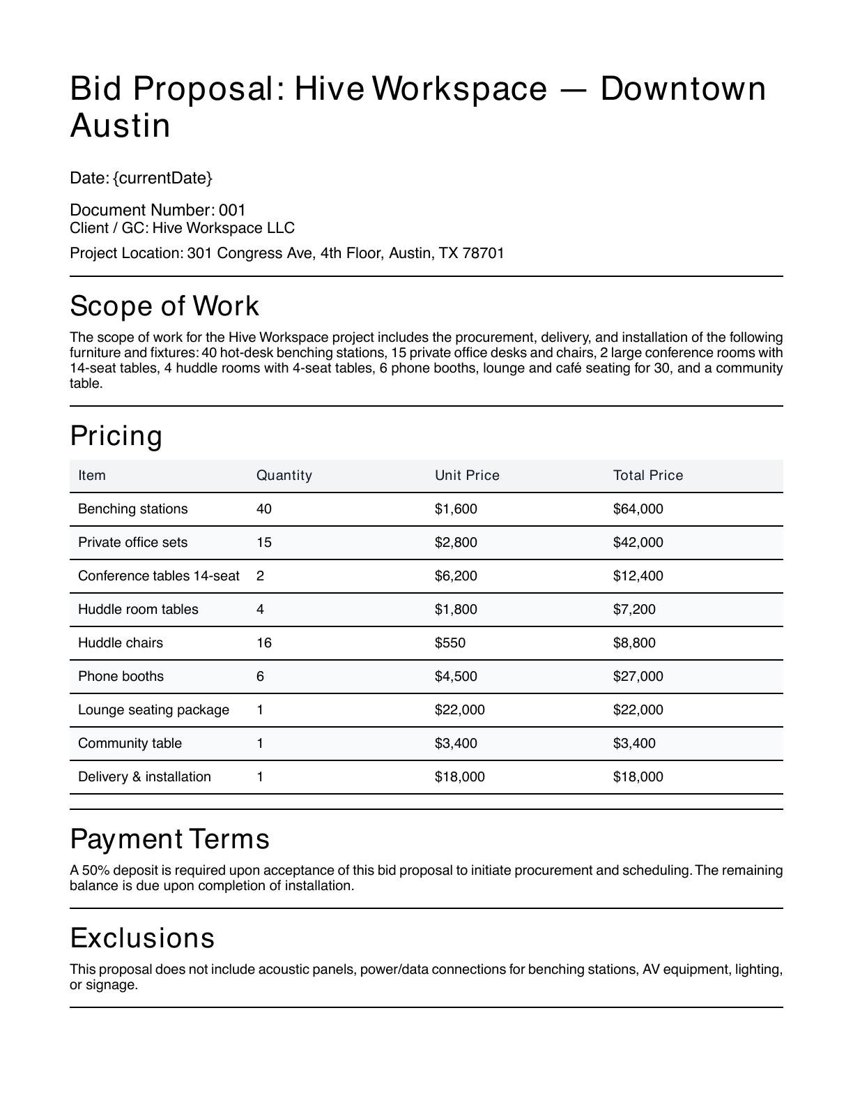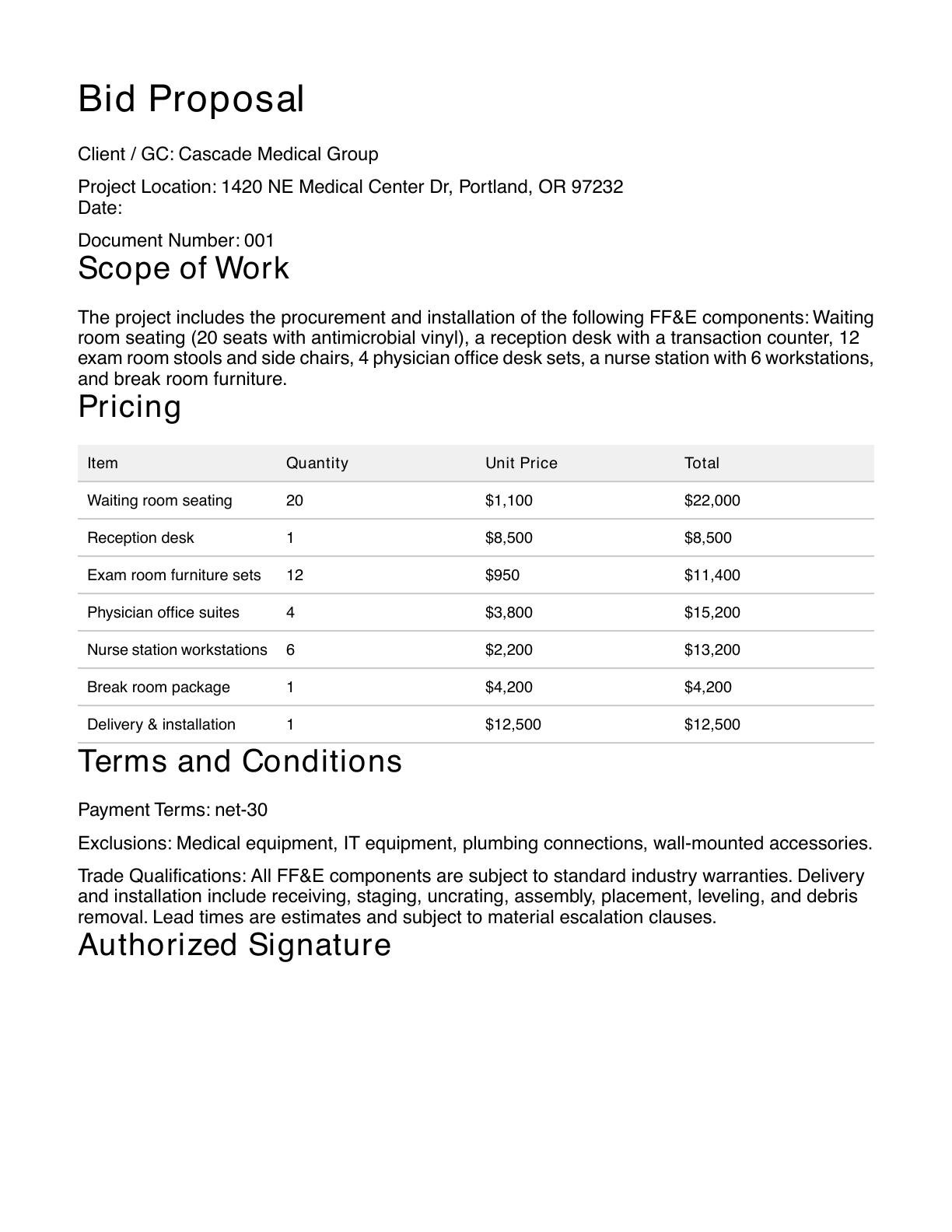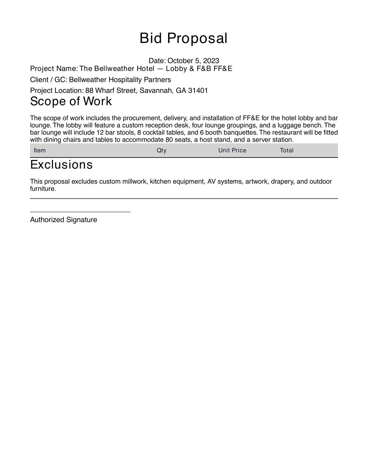 Free FF&E Bid Proposal Writer